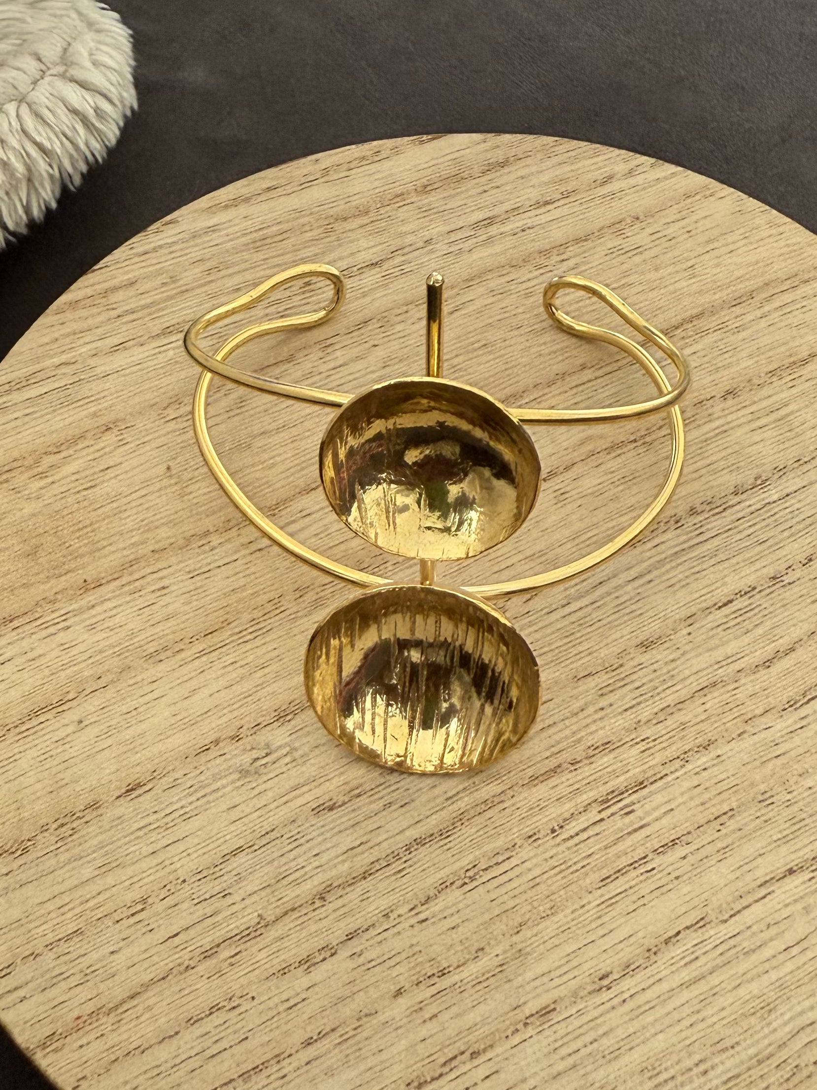 Le bronze, matière noble et intemporelle, confère à nos créations une chaleur et un éclat singulier. Martelé, sculpté ou moulé selon des techniques ancestrales, il révèle des bijoux au caractère authentique et à la beauté brute.