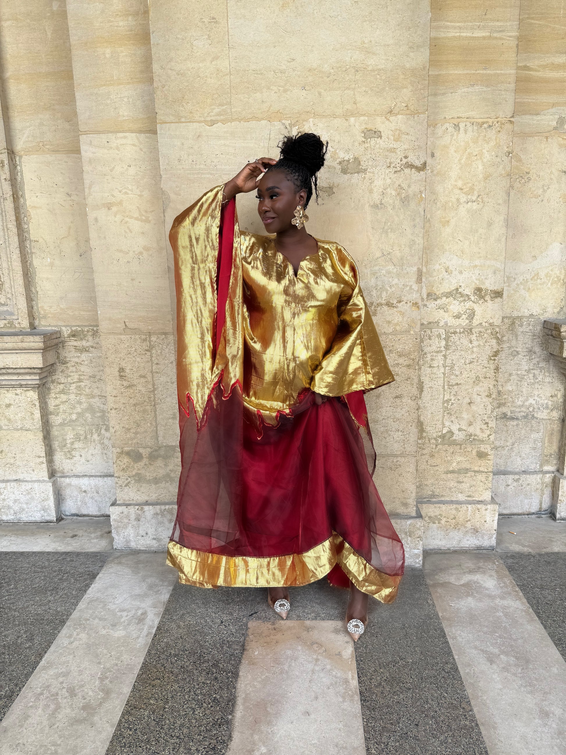 Entre dans la pièce comme un rayon de soleil. Cette création somptueuse célèbre la beauté, la grâce et l’audace féminine à travers une couleur or éclatante, symbole de puissance et de prestige.