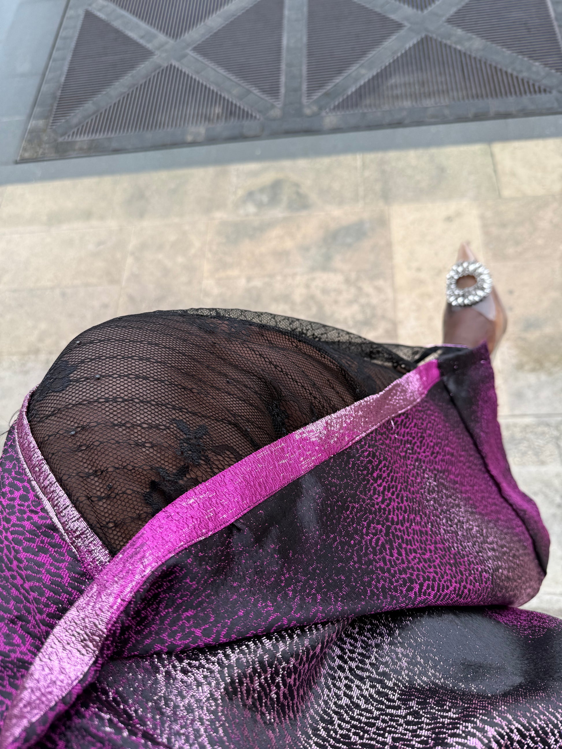 Ce boubou revisité allie la noblesse d’un volume fluide à la subtilité d’une sous-robe en dentelle délicate, révélant sans trop montrer, suggérant sans exposer. Le résultat ? Une silhouette aérienne, raffinée, profondément féminine, sans jamais tomber dans l’excès.