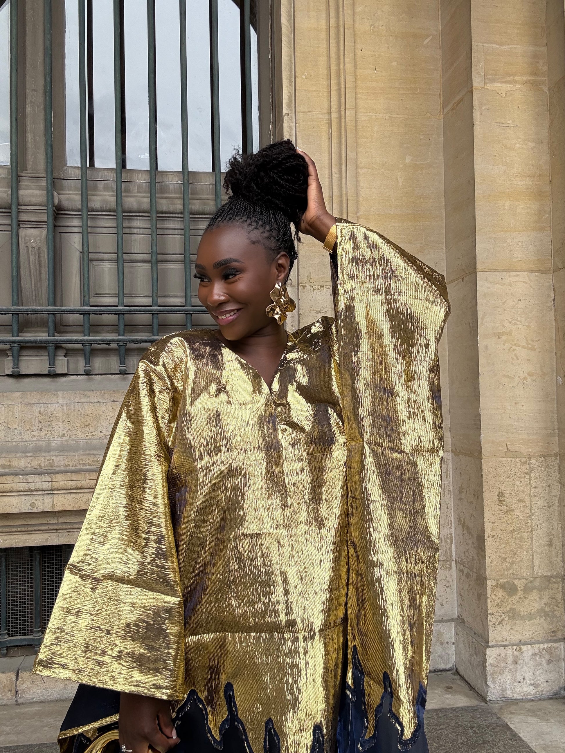 Entre dans la pièce comme un rayon de soleil. Cette création somptueuse célèbre la beauté, la grâce et l’audace féminine à travers une couleur or éclatante, symbole de puissance et de prestige.